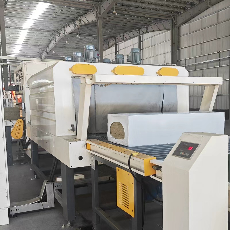 The packaging machine is the final section of the rock wool production line, where stacked panels are wrapped and prepared for transportation. Packs are automatically wrapped with polyethylene film and thermoshrinked, and can be compressed during packaging to reduce volume and lower transportation costs. After wrapping, the packs may be automatically palletized using an anthropomorphic robot. Depending on customer requirements, the packaging system can also be equipped with stretch film wrapping, extended film wrapping, or hooding machines to complete the final packing process.